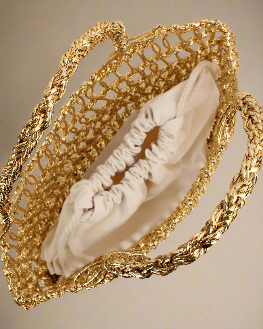Sunray Bag combines natural charm with a timeless, handcrafted expression. The open weaving patterns provide an airy and summery look, while the included inner pouch ensures your belongings are securely stored.